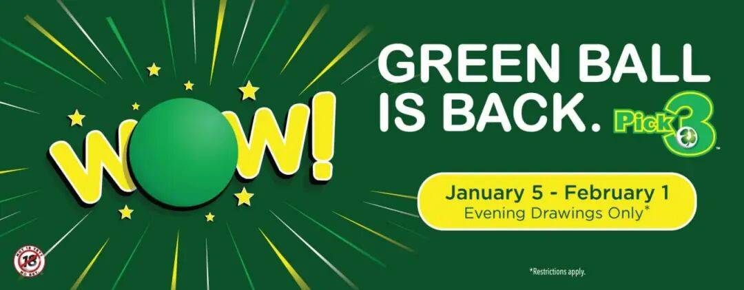 除了密歇根州彩票,新泽西州彩票在新年伊始也对数字游戏“选3”(Pick 3)开展“绿球”(Green Ball)开奖活动。1月5日至2月1日,在“选3”晚间开奖结束后,使用指定的“绿球”开奖机进行单独开奖,开奖机里装有6个白球和1个绿球。每晚摇出一个号码球,如果摇出的是绿球,则再次进行“选3”游戏开奖;如果摇出的是白球,则将该球从机器中取出,第二天晚上再次摇奖,这次白球数量减少一个,如此反复,直到抽到绿球为止,绿球抽出后再次进行“选3”游戏开奖。也就是说,购彩者购买1注号码有机会参加2次开奖,增加中奖几率。