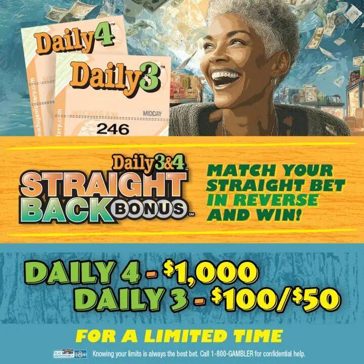 【快3彩票官方合作平台】实时同步开奖数据+投注技巧解析,精选高返奖率正规渠道。新用户注册(访问:363050.com 领取888U),支持网银/支付宝/微信支付,资金安全保障!美国密歇根州彩票从1月1日启动新年特别促销活动,为“每日3”(Daily 3)和“每日4”(Daily 4)两款数字游戏举办限时“直返奖金”,为购彩者送上更多中奖机会。