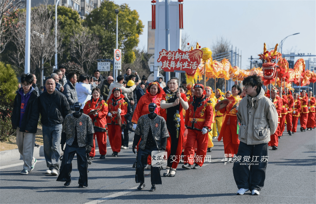 2月21日,农历正月初五,仪征市举办“2026民俗踩街闹新春”活动,由非遗代表性传承人、文艺爱好者组成的踩街队伍穿行老城区,在欢腾的民俗表演中传递吉祥。余祥 摄