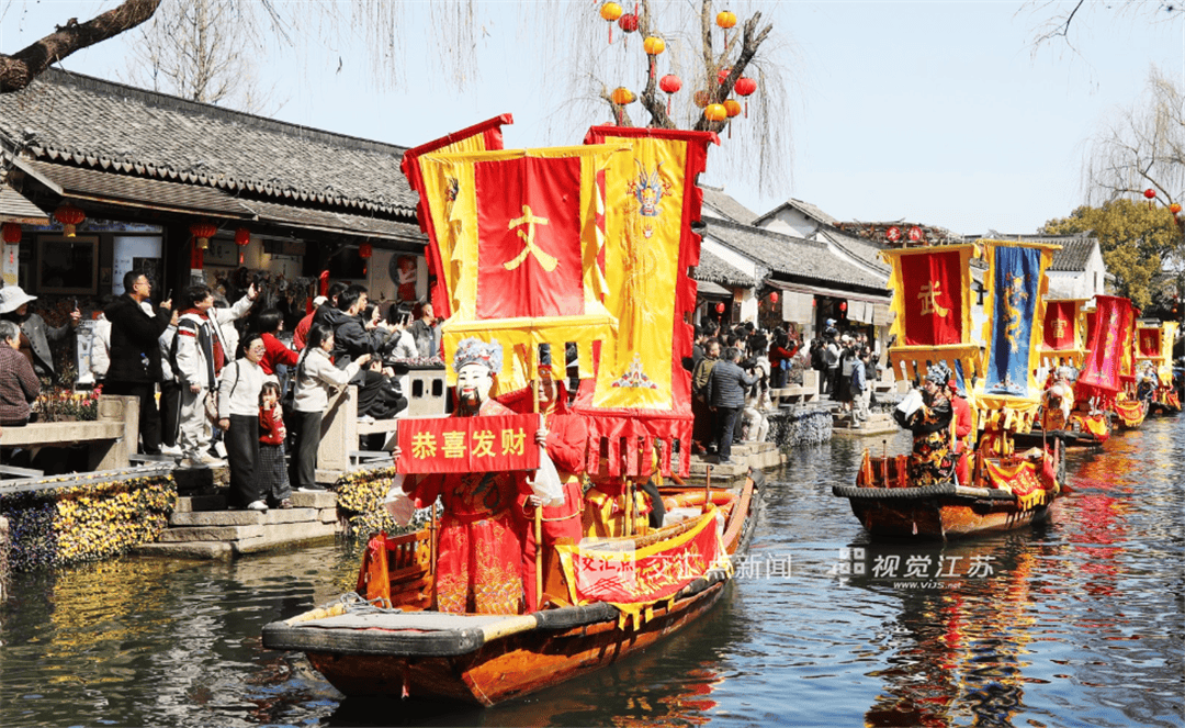 2月21日,苏州周庄举行“财神”水上巡游特色民俗活动,向沿街商家与游客送上祝福。朱桂根 摄