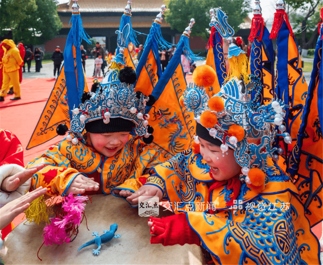 2月19日,正月初三,南京第三届朝天宫新春游园会活动现场,两名儿童身着传统戏曲武生服装,戏曲文化融入民间年俗,非遗在少儿群体中鲜活传承。王建英 摄
