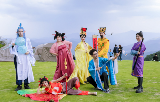 景区内,精心设计的互动活动精彩纷呈。景区入口处的青铜“结界兽”雕塑,作为“结界启动”互动装置,充满了科技感与神秘感,引得游客们纷纷驻足合影,想要留下这独特的瞬间。“神仙巡游”活动中,“天官”气宇轩昂,“王母娘娘”雍容华贵,这些NPC形象生动逼真,仿佛从神话故事中穿越而来。他们与游客们积极互动,游客们则争先恐后地与他们合影留念,现场气氛热烈非凡。