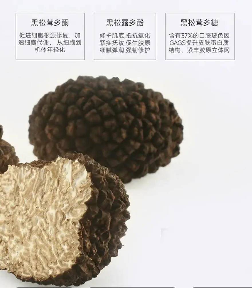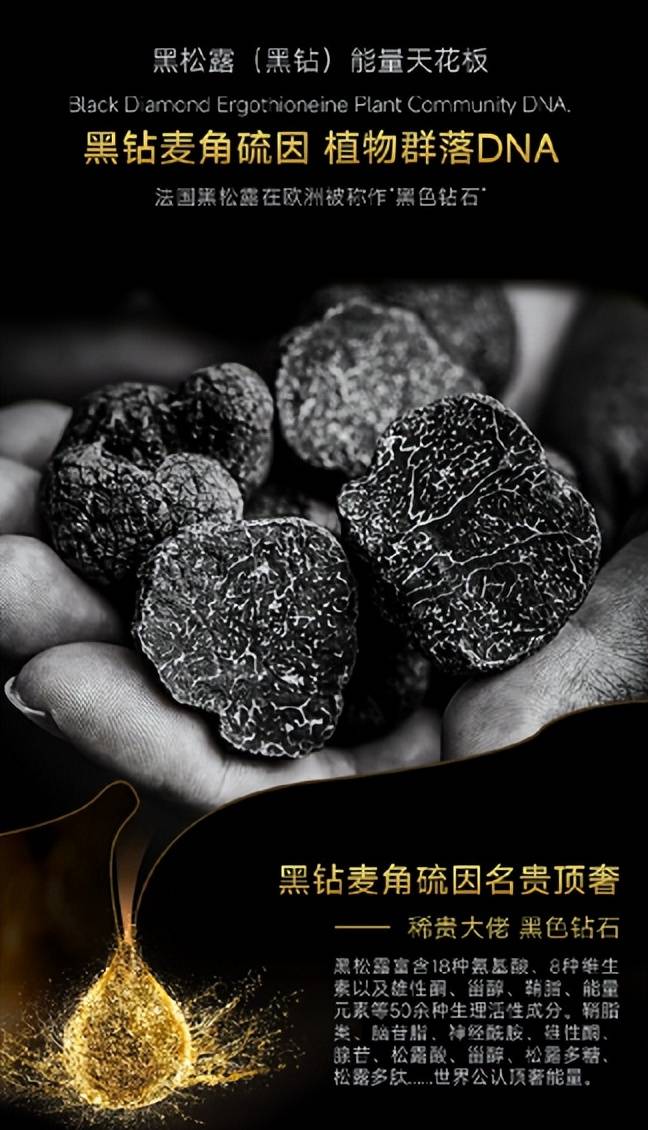 黑钻松露降维打击!普通菌菇根本不够打!原料硬实力直接拉开差距:一代依赖普通菌菇提取,原料力平平无奇,功效上限有限;二代则狠下血本,200公斤法国黑松露仅萃取1克精华,含金量直接拉满!